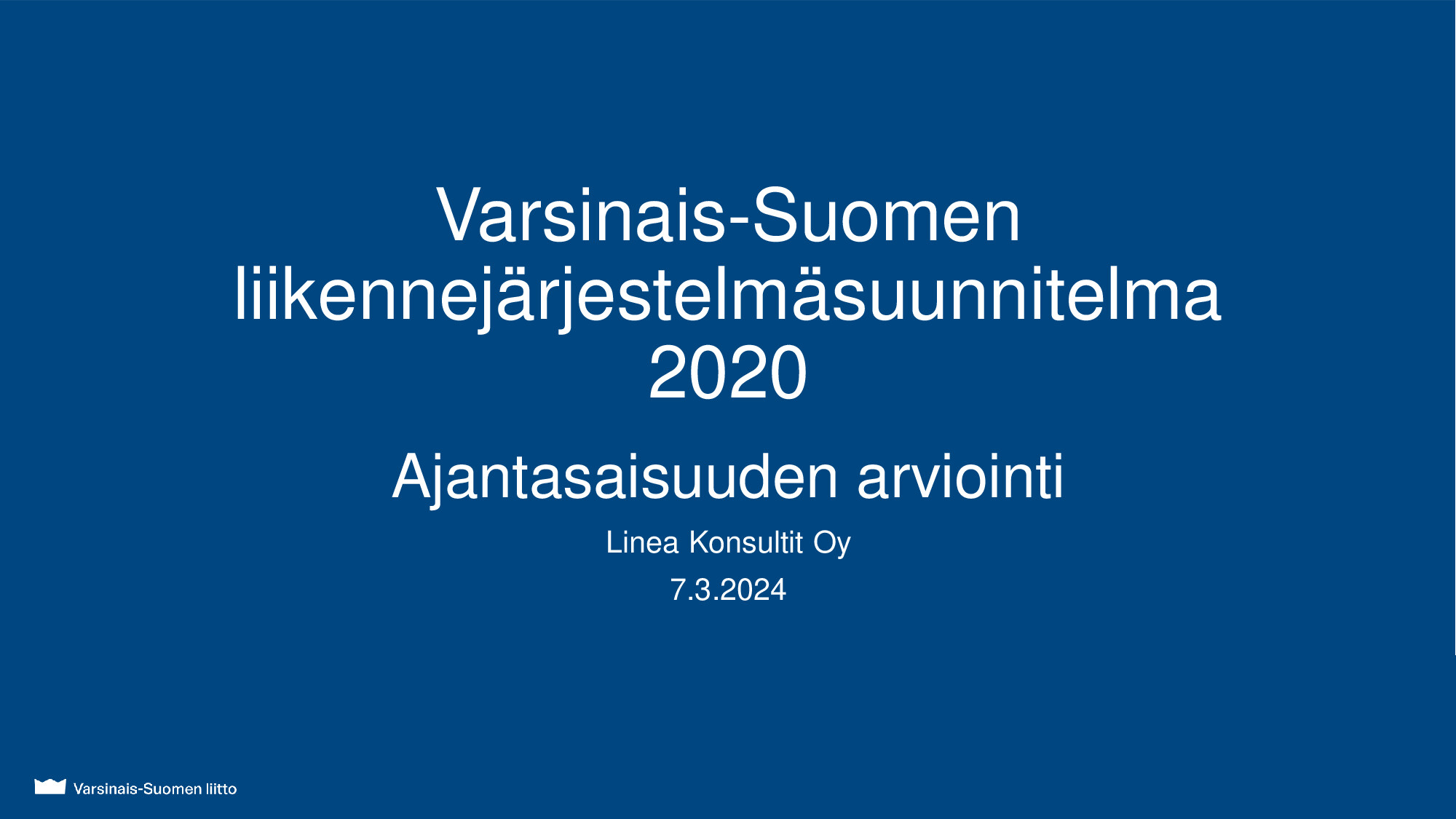 Varsinais-Suomen liikennejärjestelmäsuunnitelma 2020 ajantasaisuuden arviointi